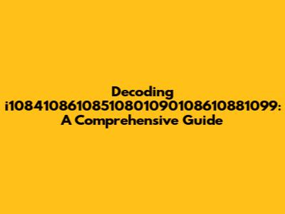 Decoding I10841086108510801090108610881099: A Comprehensive Guide