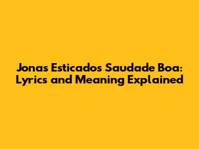 Jonas Esticado's 'Saudade Boa': Lyrics And Meaning Explained
