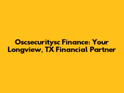 Oscsecuritysc Finance: Your Longview, TX Financial Partner