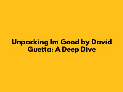Unpacking 'I'm Good' By David Guetta: A Deep Dive